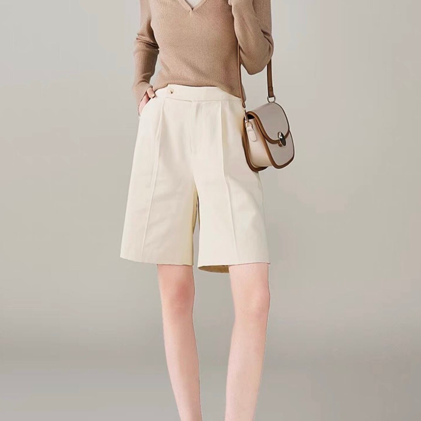 大人可愛いスタイルを叶える、カラーパンツの登場です!デートや女子会、休日のお出かけに最適なこのショートパンツは、セミフレア・ワイドシルエットで、ラフな雰囲気と上品さを兼ね備えています。ファスナー付きのポケットが実用的で、伸縮性があるため快適な着心地を実現しています。