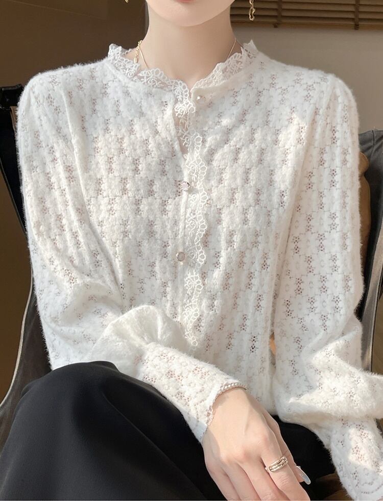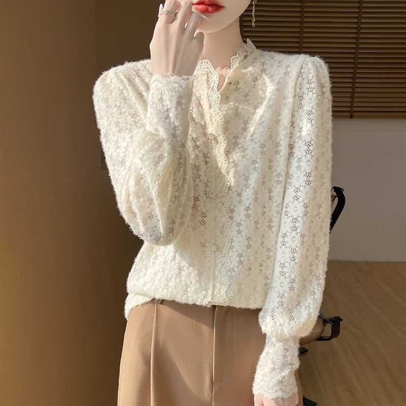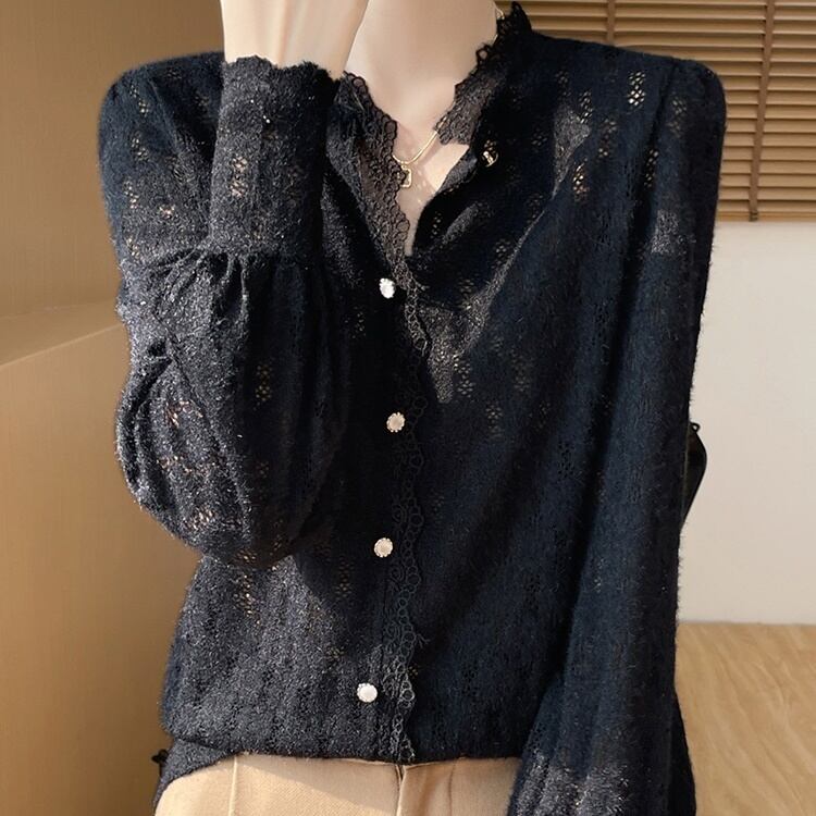 レディース トップス ニット 長袖 バルーン袖 スリム フェミニン レース フリル 前開き ボタン 大人可愛い きれいめ 上品 おしゃれ レトロ こなれ感 ガーリー 個性的 クール モード系 エレガント モダン とろみ感 抜け感 キュート 都会的 ラグジュアリー クラシカル ベーシック ナチュラル オフィス ビジネス OL 通勤 デート 韓国 オルチャン コーデ 楽ちん 暖かい 普段使い 着回し モテ 清楚 トレンド 流行 インスタ映え 定番 M L XL 2XL ホワイト ブラック ブラウン ベージュ | SPARKJOY レディースファッション