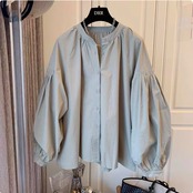 レディース トップス シャツ ブラウス デート 白シャツ ミディアム丈 袖あり 長袖 ボリューム袖 フレアスリーブ 萌袖 ラウンドネック クルーネック 襟なし セミフレア スマート プリーツ 前開き 伸縮性 かわいい 大人可愛い きれいめ シンプル カジュアル 上品 おしゃれ お洒落 レトロ 大人女子 こなれ感 ラフ ラブリー キュート ガーリー 個性的 クール モード系 エレガント モダン 主役級 存在感 抜け感 無地 レディース デート お出かけ 女子会 休日 着回し 普段使い 定番 色展開 | SPARKJOY レディースファッション