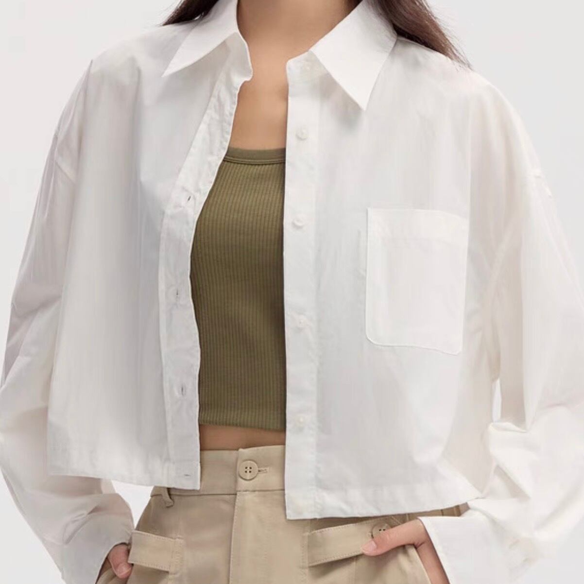 レディース トップス シャツ ブラウス デート 白シャツ 白トップス ショート ショート丈 袖あり 長袖 ボリューム袖 フレアスリーブ 萌袖 襟付き スマート 前開き 伸縮性 かわいい 大人可愛い きれいめ シンプル カジュアル 上品 おしゃれ お洒落 レトロ 大人女子 こなれ感 ラフ ラブリー キュート ガーリー 個性的 クール モード系 エレガント モダン 主役級 存在感 抜け感 無地 レディース デート お出かけ 女子会 休日 着回し 普段使い ファッション コーデ スタイル モテ 定番 | SPARKJOY レディースファッション