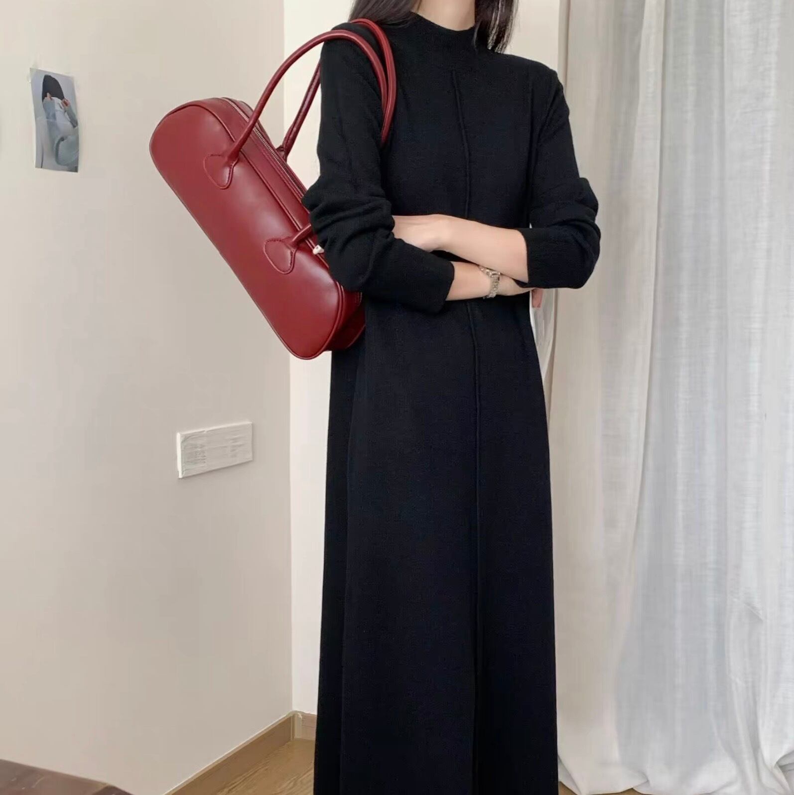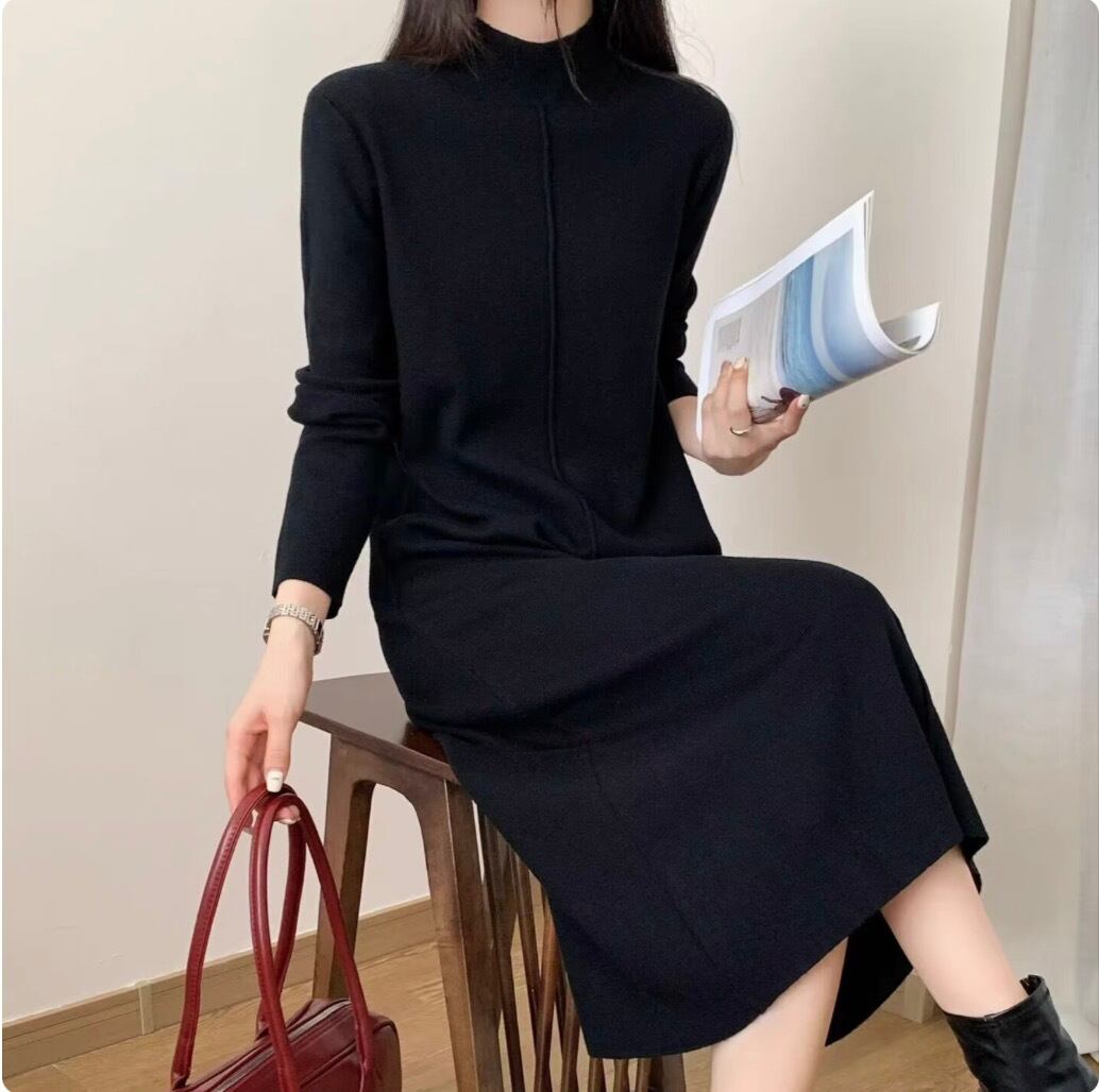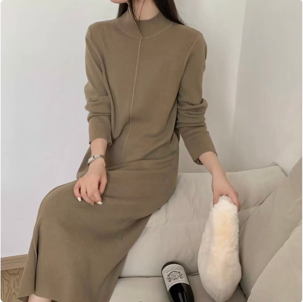レディース ワンピース デート ワンピドレス ロング ロング丈 袖あり 長袖 襟付き スタンドカラー セミフレア 細身 ストレート 切り替えデザイン スマート 伸縮性 かわいい 大人可愛い きれいめ シンプル カジュアル 上品 おしゃれ お洒落 レトロ 大人女子 こなれ感 ラフ ラブリー キュート ガーリー 個性的 クール モード系 エレガント モダン 主役級 存在感 抜け感 無地 レディース デート お出かけ 女子会 休日 着回し 普段使い ファッション コーデ スタイル モテ 定番 色展開 | SPARKJOY レディースファッション
