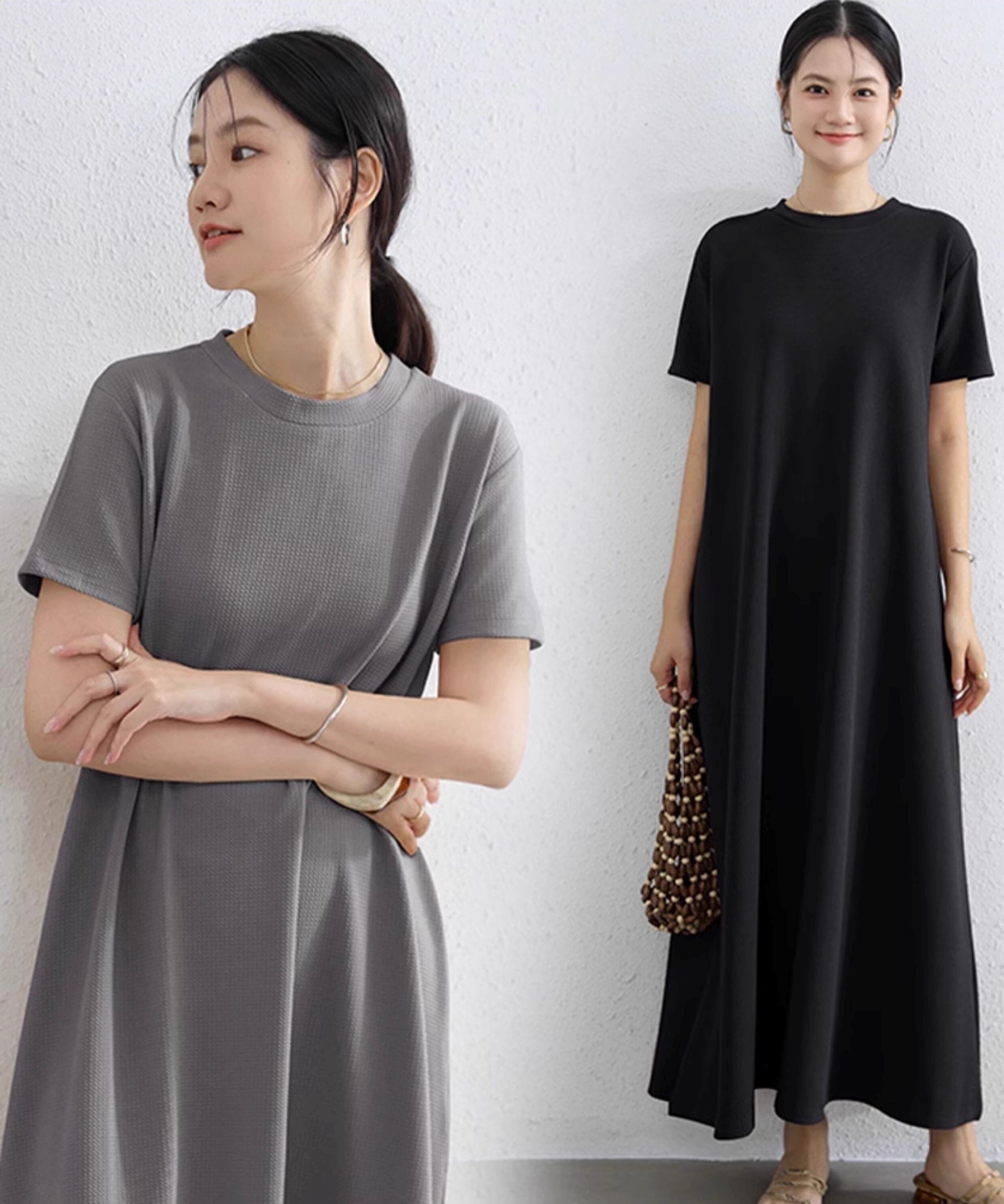 ワンピース ロングワンピース 半袖 クルーネック フレアスカート 部屋着 ルームウエア かわいい 大人可愛い きれいめ シンプル 上品 おしゃれ カジュアル こなれ感 個性的 主役級 存在感 抜け感 春 夏 ベーシック ナチュラル クール メンズライク 無地 女性用 レディース ママ マタニティ OL 通勤 オフィス 学生 通学 デート お出かけ お泊まり 女子会 旅行 休日 カフェ ショッピング コンパ イベント 普段使い デイリー 着回し 重ね着 M L 楽ちん ゆったり モテ 定番アイテム | SPARKJOY レディースファッション