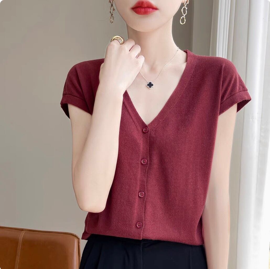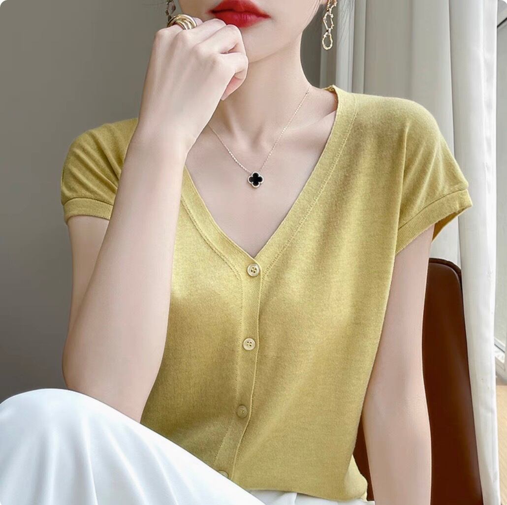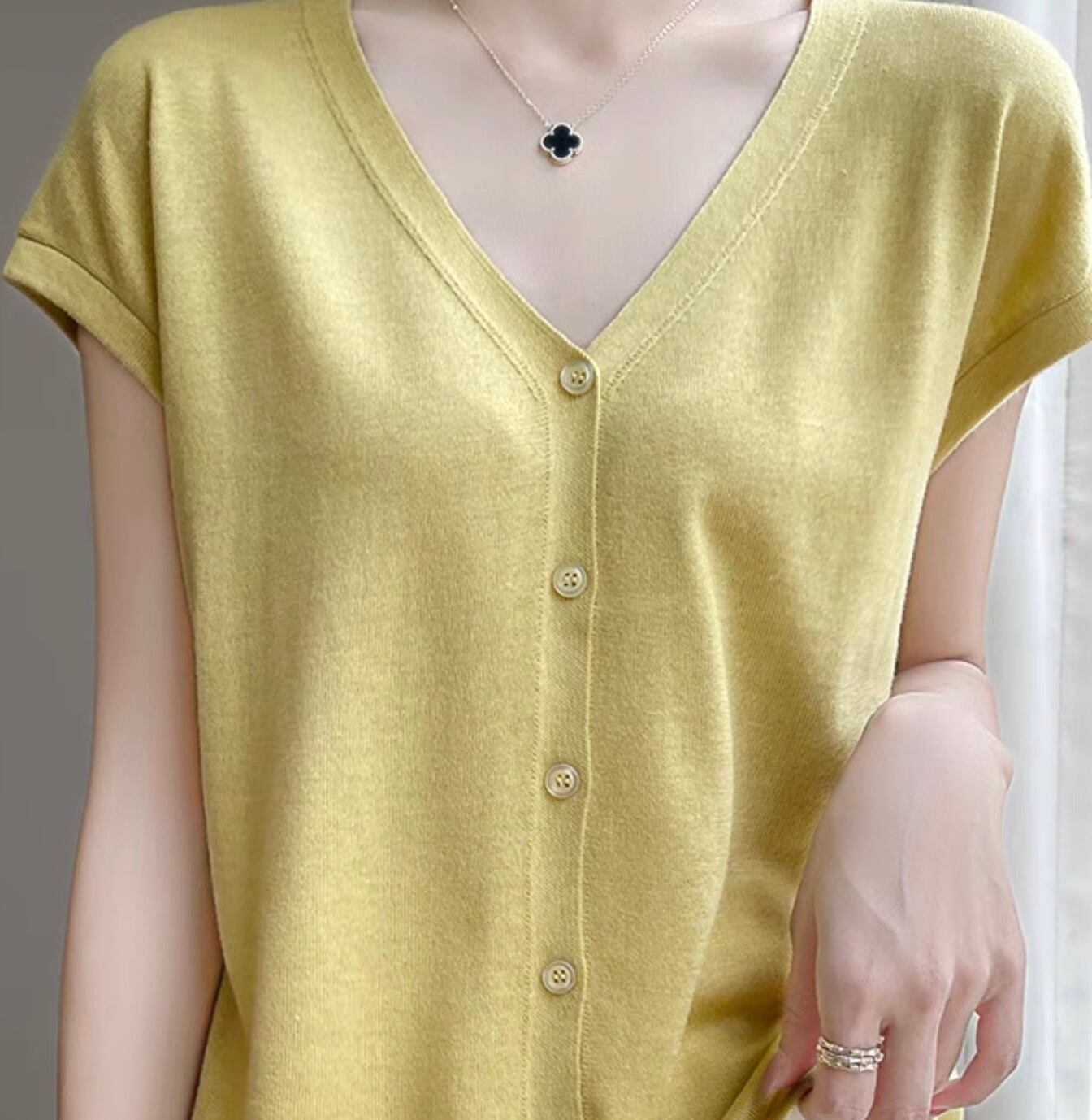 シンプルでありながら、上品な大人可愛い雰囲気を演出する「レディース トップス カットソー カーディガン サマーニット」です!半袖のショート丈とVネックデザインが、クールでありながらもガーリーな印象を与え、デートや女子会、お出かけシーンにぴったりです。また、薄手で透け感のある素材は、着る人を選ばず、カジュアルにもきれいめにも合わせられます。