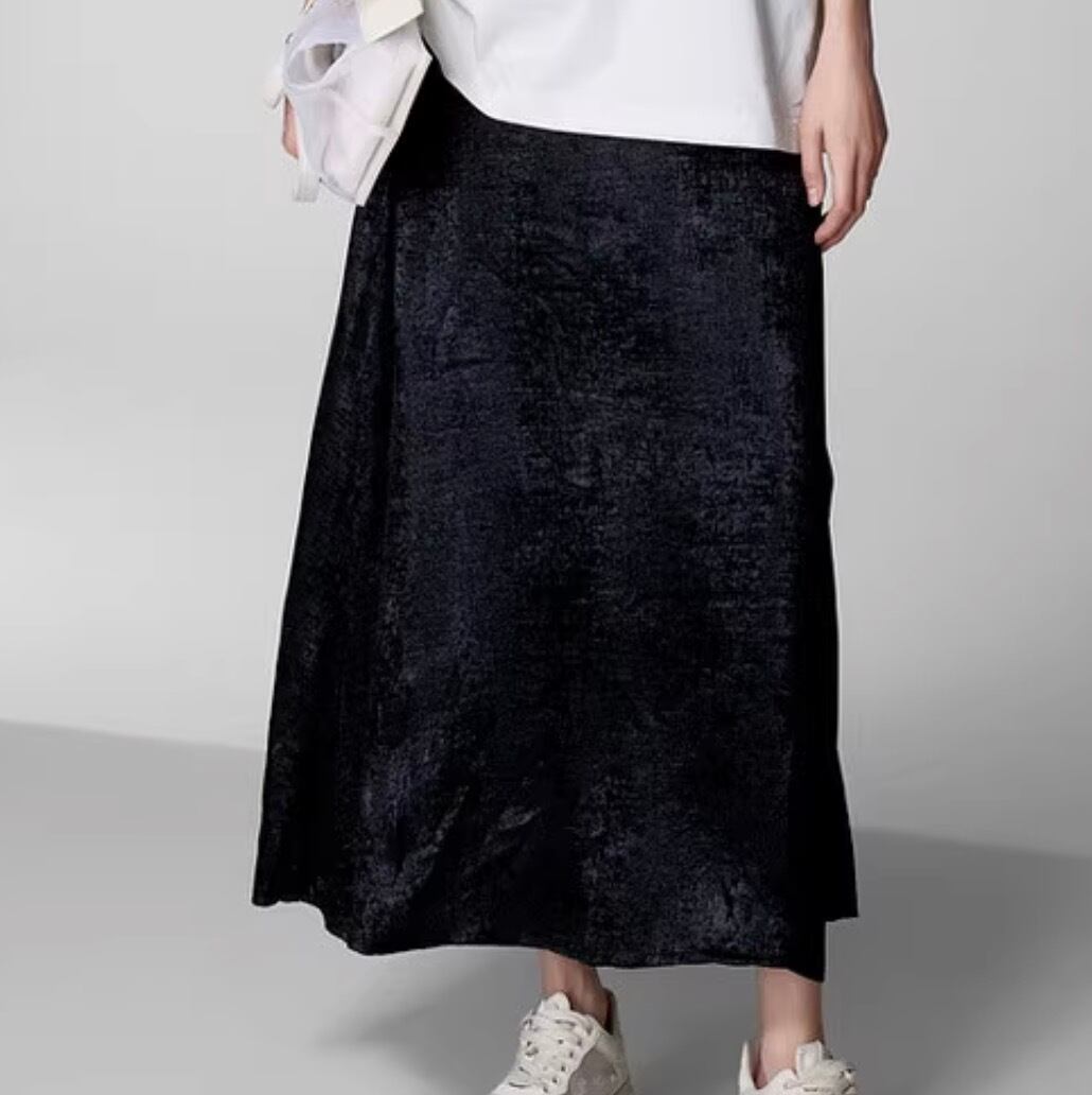 ロング丈はさりげなくスタイルアップを叶え、カジュアルからきれいめなコーディネートまで幅広く活躍します。無地のデザインは着回しがしやすく、様々なトップスと組み合わせが可能です。休日の女子会やデイリーユースにもおすすめで、コーデの主役級となる存在感があります。
