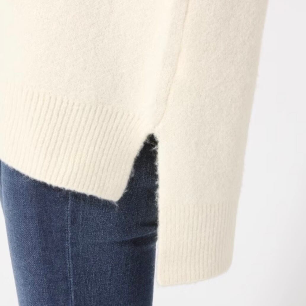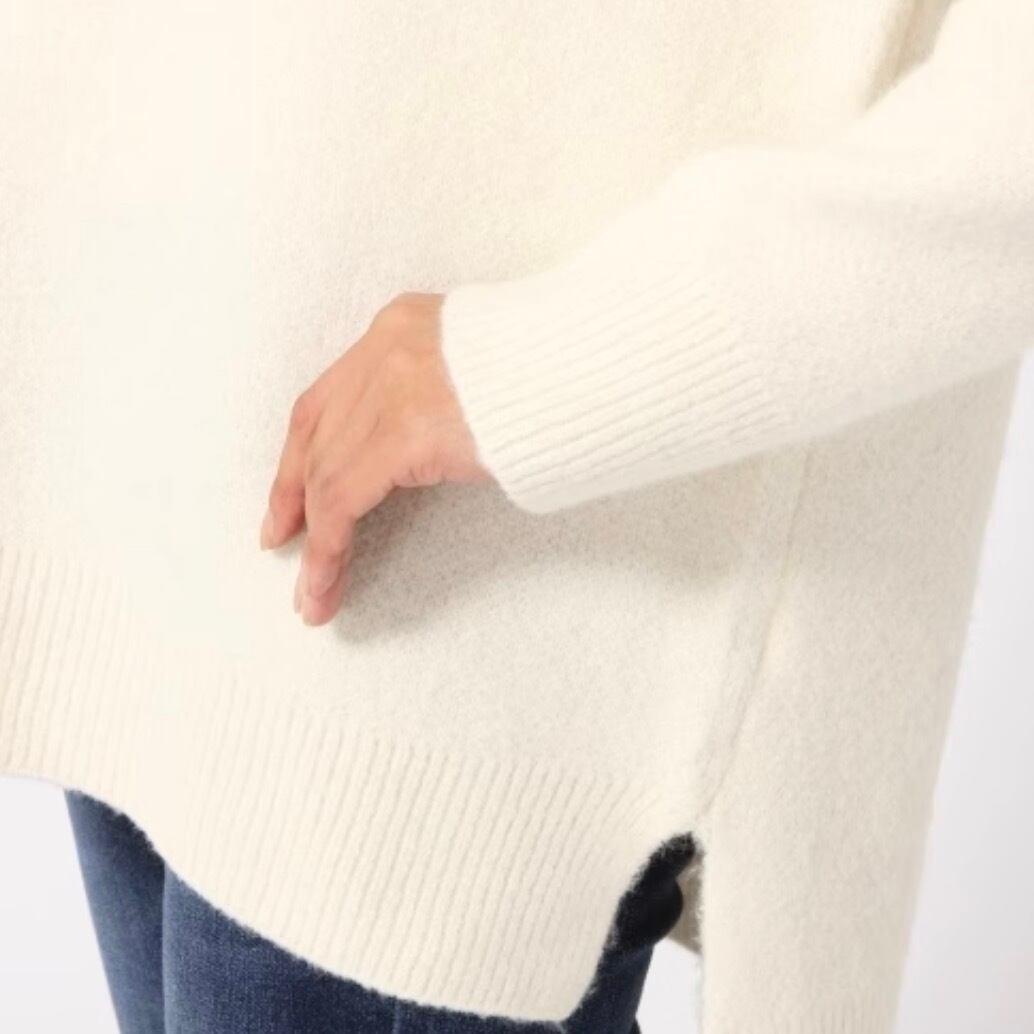 レディース トップス カットソー ニット セーター デート 白トップス ミディアム丈 袖あり 長袖 萌袖 Vネック 襟なし ワイド スマート スリット サイドスリット 伸縮性 かわいい 大人可愛い きれいめ シンプル カジュアル 上品 おしゃれ お洒落 レトロ 大人女子 こなれ感 ラフ ラブリー キュート ガーリー 個性的 クール モード系 エレガント モダン 主役級 存在感 抜け感 無地 レディース デート お出かけ 女子会 休日 着回し 普段使い ファッション コーデ スタイル モテ 定番 | SPARKJOY レディースファッション