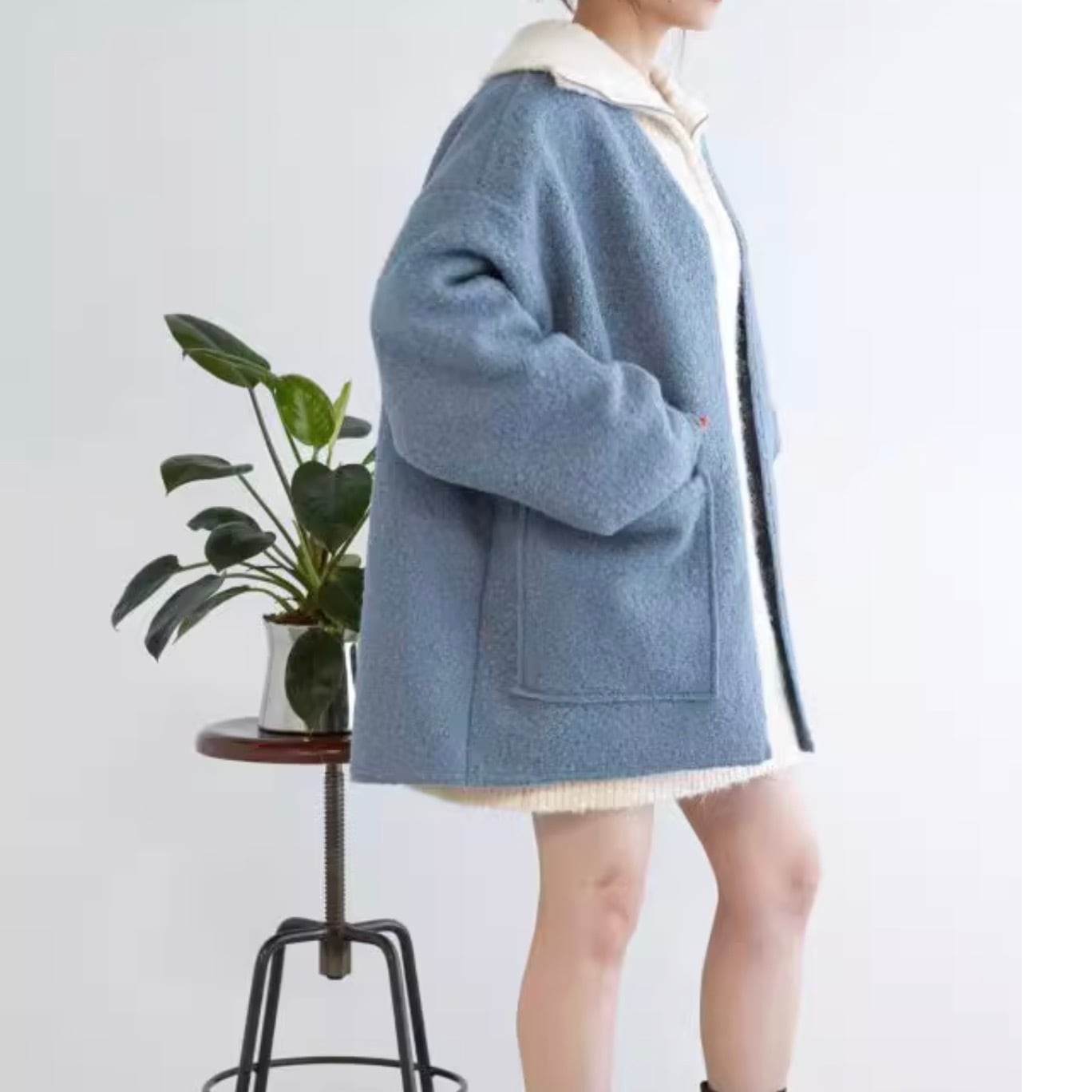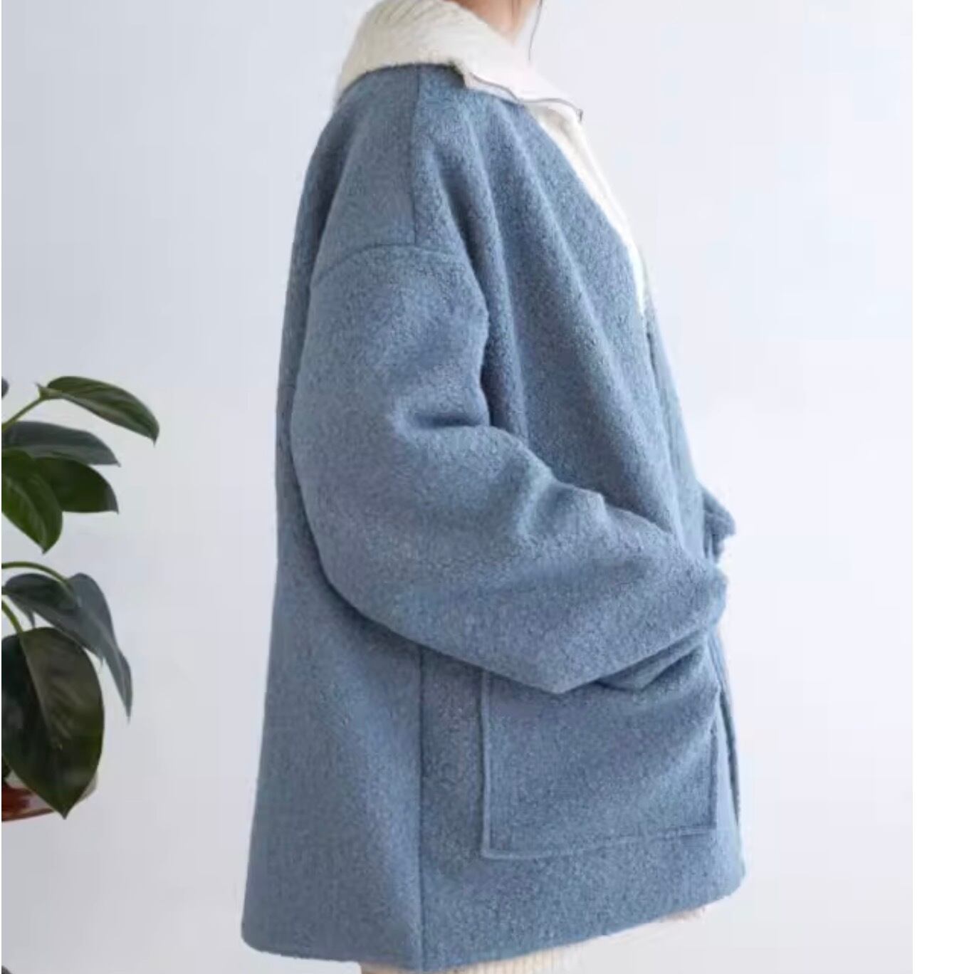 大人可愛いもこもこブルゾン、登場!デートや女子会、お出かけにぴったりで、これ一枚でおしゃれなコーディネートが完成します。襟なしのミディアム丈とワイドな切り替えデザインが、シンプルながら存在感を放つアイテムです。ポケット付きで機能性も抜群。普段使いから休日のお出かけまで幅広く活躍します。