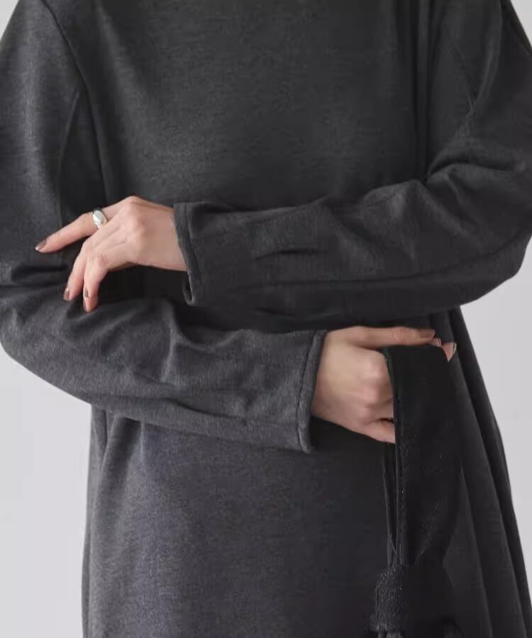 レディース ワンピース ロング マキシ 長袖 ボリューム袖 クルーネック 襟なし ストレート Iライン 大人可愛い きれいめ シンプル カジュアル 上品 おしゃれ こなれ感 ラフ ルーズ ベーシック ナチュラル 無地 春 秋 母の日 ママ 学生 通学 学校 デート お出かけ 旅行 女子会 休日 ショッピング カフェ モノトーン コーデ 楽ちん プレゼント 体型カバー 普段使い M L ゆったり 黒 ブラック グレー ベーシックカラー 大人カラー | SPARKJOY レディースファッション