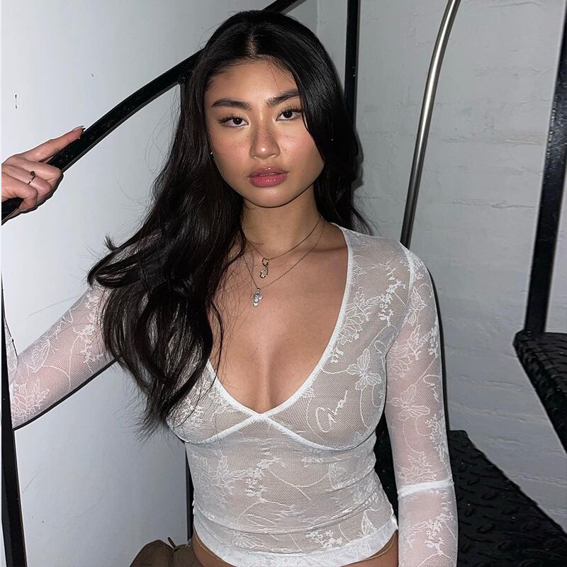 トップス カットソー Tシャツ 長袖 Vネック プルオーバー タイト ショート丈 シースルー かわいい 大人可愛い きれいめ シンプル 上品 おしゃれ かっこいい カジュアル こなれ感 個性的 主役級 存在感 抜け感 春 夏 ベーシック ナチュラル セクシー エレガント 蝶々 女性用 レディース ママ OL 通勤 オフィス 学生 通学 デート お出かけ お泊まり 女子会 旅行 リゾート 休日 カフェ ショッピング コンパ イベント 普段使い デイリー 着回し 重ね着 XS S M L モテ トレンド | SPARKJOY レディースファッション