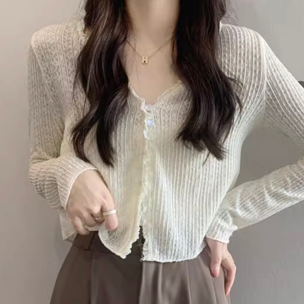 レディース トップス カットソー カーディガン デート 白トップス ショート ショート丈 袖あり 長袖 萌袖 Vネック 襟なし スリム タイト 細身 スマート 前開き 伸縮性 薄手 かわいい 大人可愛い きれいめ シンプル カジュアル 上品 おしゃれ お洒落 レトロ 大人女子 こなれ感 ラフ ラブリー キュート ガーリー 個性的 クール モード系 エレガント モダン 主役級 存在感 抜け感 無地 レディース デート お出かけ 女子会 休日 着回し 普段使い ファッション コーデ モテ 定番 色展開 | SPARKJOY レディースファッション