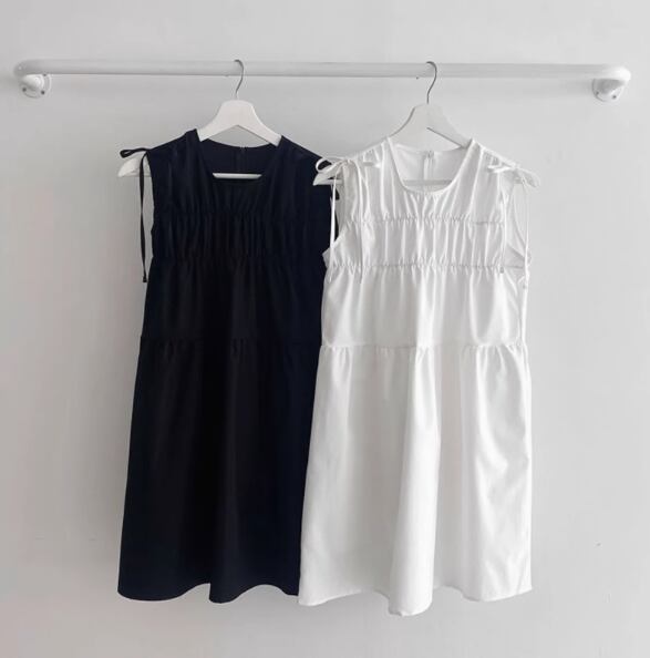 大人可愛い魅力を引き出すクルーネックデザインのノースリーブベストドレスです。プリーツが施されたおしゃれな蝶ネクタイモチーフが、大人のラフさと可愛らしさを絶妙に演出します!フォーマルからカジュアル、お出かけやデート、学生の通学スタイルにも幅広くマッチする1着です。個性的なルーズシルエットは、都会的でエレガントな印象を与え、特別な日の主役級の存在感を放ちます。