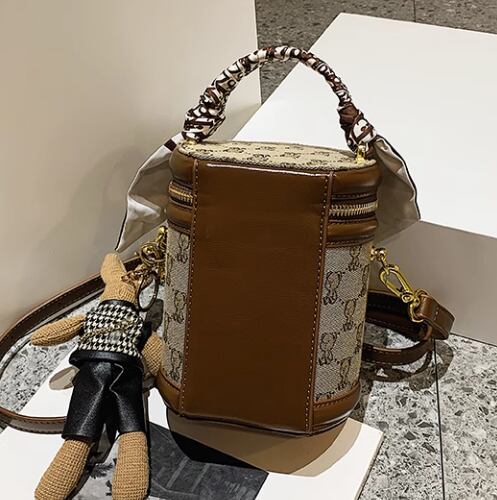 バッグ カバン レディース ショルダー 斜めがけ 肩がけ ポシェット ミニバッグ ミニ 小さい 便利 コンパクト 軽量 自立 ベルト チャーム ファスナー 筒型 マスコット 厚手 フェイクレザー 布 かわいい カジュアル お洒落 レトロ ラブリー キュート クラシック フェミニン 柄 アニマル くま うさぎ デート お出かけ 旅行 お買い物 女子会 休日 普段使い コーデ 高見え 格上げ インスタ映え 春 夏 秋 冬 シーズンレス お食事会 小さめ 小さい 茶色 ブラウン | SPARKJOY レディースファッション