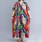 ワンピース ロング丈 Vネック 総柄 レディース 5分袖 ワイド フレア かわいい 大人可愛い きれいめ シンプル カジュアル おしゃれ かっこいい レトロ アジアン こなれ感 ラフ ルーズ 個性的 抜け感 キュート カントリー アクティブ ナチュラル 花柄 ママ マタニティ デート お出かけ お泊まり 女子会 休日 バカンス 双子 韓国 オルチャン コーデ 楽ちん 体型カバー 美脚 脚長 普段使い 着回し トレンド 流行 インスタ映え 大きいサイズ ビッグ ゆったり ゆる フリーサイズ ピクチャーカラー | SPARKJOY レディースファッション