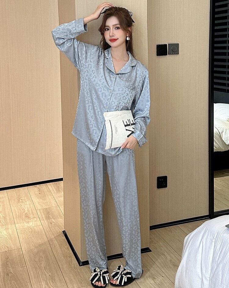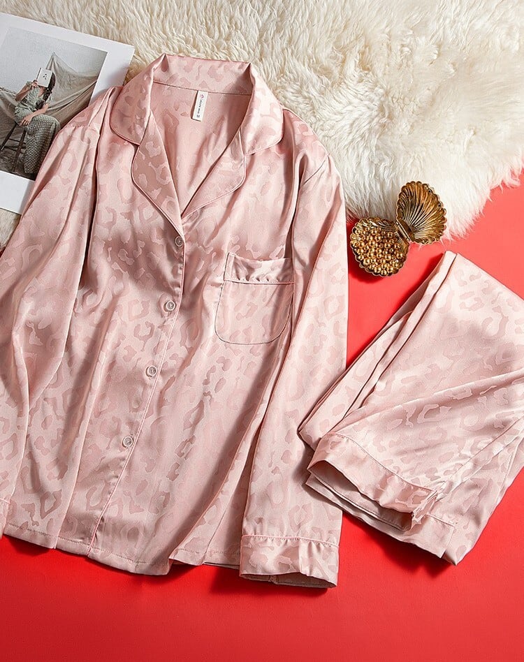 さりげないアニマル柄が大人の魅力を引き立てる、長袖パジャマセット。