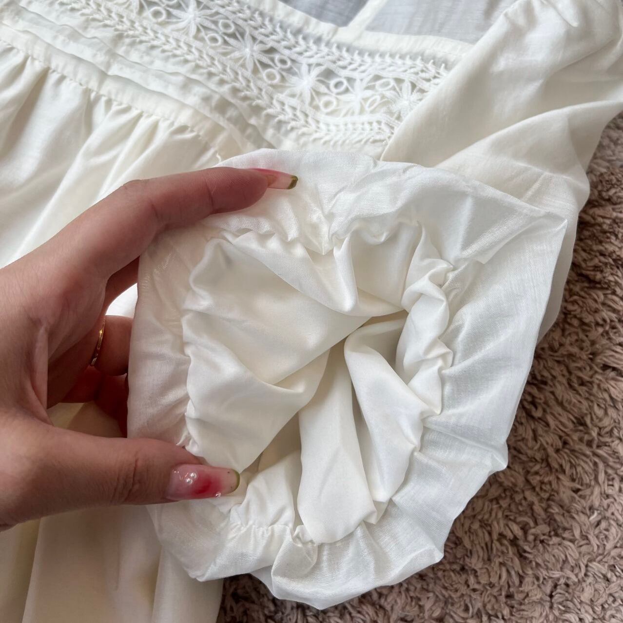 胸元のレースデザインがさりげなく華やかさをプラスし、一枚でコーデの主役になるアイテムです。