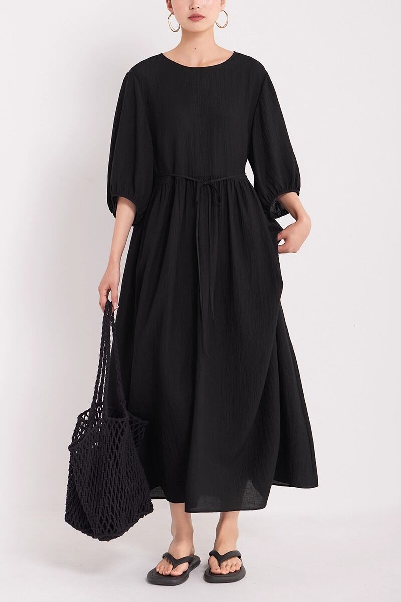 レディース ワンピース ブラウス ドレス ロング 5分袖 ラウンドネック 襟なし フレア フォーマル 背中開き オーバーサイズ フェミニン ウエストマーク 薄手 大人可愛い きれいめ シンプル 上品 おしゃれ こなれ感 ガーリー クール モード系 エレガント 主役級 フォーマル とろみ感 抜け感 ラグジュアリー クラシカル ロマンティック ナチュラル 無地 春 秋 二次会 デート お出かけ イベント リゾート 旅行 海 レストラン 女子会 休日 バカンス ホテル ガーデン ショッピング 発表会 コンサー | SPARKJOY レディースファッション