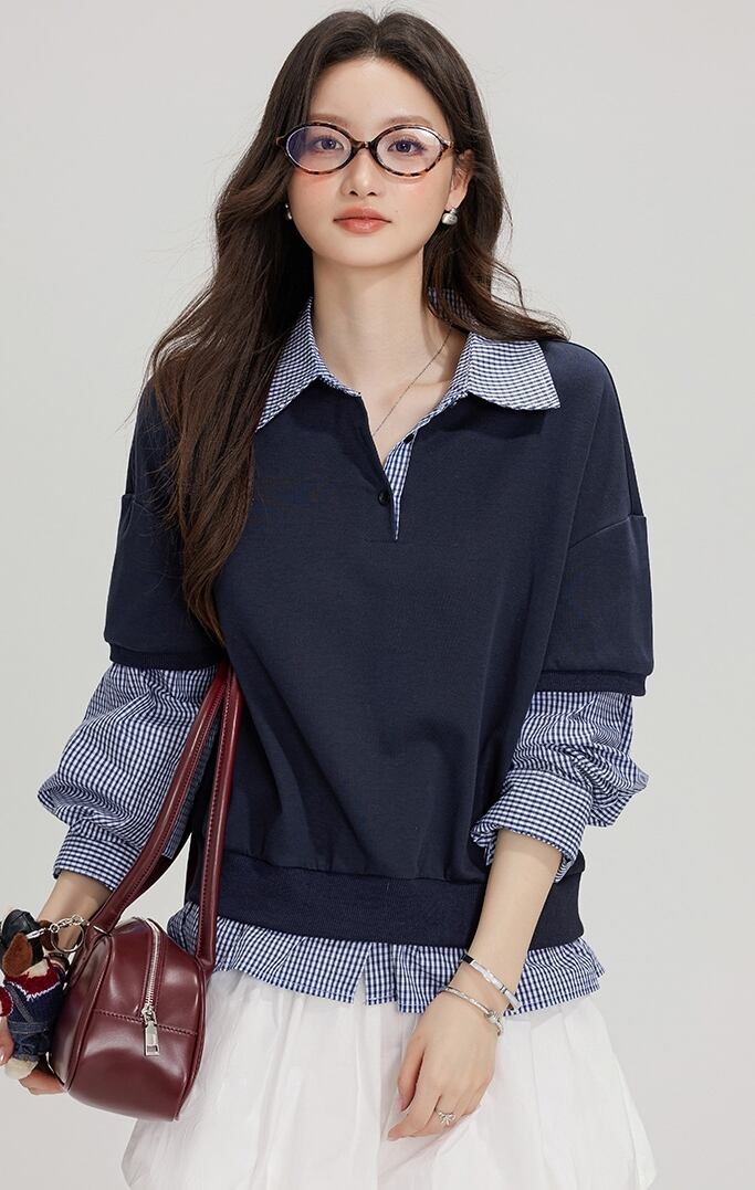 襟付きのハーフボタンプルオーバーは上品さとカジュアルさを兼ね備えたデザインで、重ね着風のスタイルはおしゃれなこなれ感を演出します。