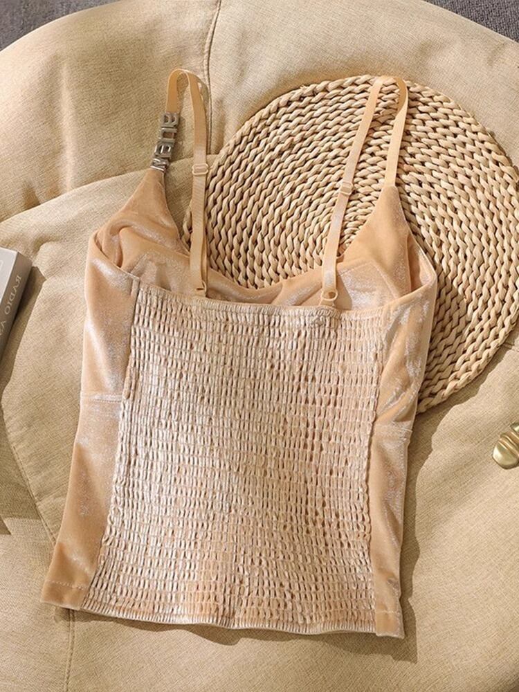 バックシャーリング レディース トップス キャミソール インナー ショート 袖なし ノースリーブ 襟なし ノーカラー タイト スリム 細身 スマート ストレッチ 伸縮性 シンプル カジュアル おしゃれ こなれ感 クール 抜け感 無地 ロゴ 春 秋 冬 お出かけ イベント 旅行 休日 ライブ フェス 重ね着 韓国 オルチャン コーデ 普段使い 着回し レイヤード S M L 黒 ブラック ベージュ モノトーン ベーシックカラー 大人カラー | SPARKJOY レディースファッション