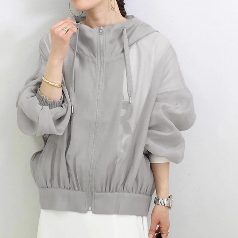 トップス パーカー フーディー 長袖 ボリューム袖 前開き ファスナー シースルー 透け感 ミディアム丈 かわいい 大人可愛い きれいめ シンプル 上品 レトロ おしゃれ かっこいい カジュアル こなれ感 個性的 主役級 存在感 ルーズ 抜け感 春 夏 ベーシック ナチュラル クール 無地 女性用 レディース ママ OL 通勤 オフィス 学生 通学 デート お出かけ お泊まり 女子会 旅行 リゾート 休日 カフェ ショッピング コンパ イベント 普段使い デイリー 着回し 重ね着 M L トレンド | SPARKJOY レディースファッション
