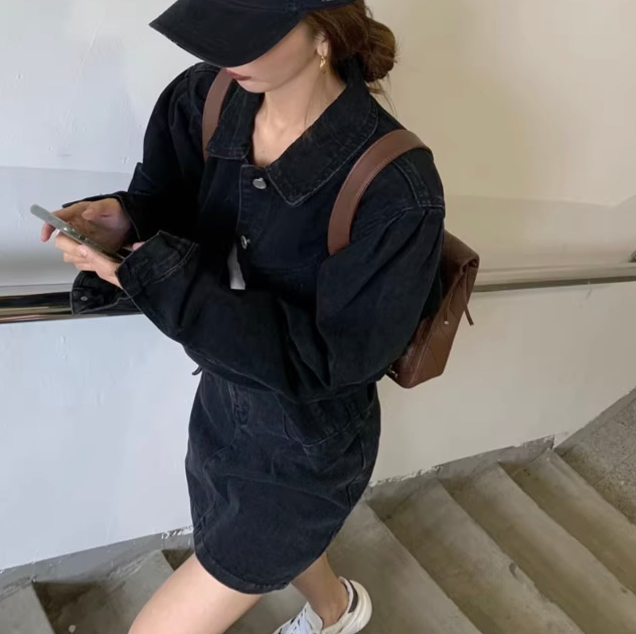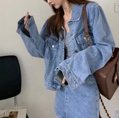 レディース スカート ジャケット セットアップ 上着 ブルゾン Gジャン ミニスカート デニムスカート ショート ショート丈 袖あり 長袖 ボリューム袖 萌袖 襟付き タイト 前開き 伸縮性 デニム ブルーデニム 上下セット かわいい 大人可愛い きれいめ シンプル カジュアル 上品 おしゃれ お洒落 レトロ 大人女子 こなれ感 ラフ ラブリー 個性的 クール モード系 エレガント モダン 主役級 存在感 抜け感 お出かけ 女子会 休日 着回し 普段使い ファッション コーデ スタイル モテ | SPARKJOY レディースファッション