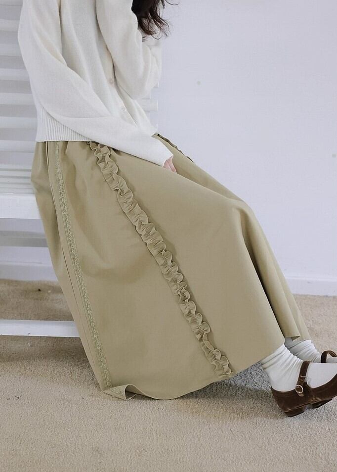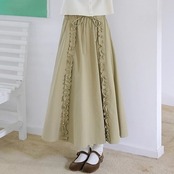 レディース スカート ボトムス フレア 膝下 ミモレ ロング レース フリル ポケット ドロスト 大人可愛い きれいめ シンプル カジュアル 上品 おしゃれ こなれ感 無地 春 夏 秋 冬 オールシーズン ママ 学生 学校 通学 デート お出かけ イベント 旅行 レストラン 女子会 休日 ショッピング ライブ お花見 合コン コンパ カフェ フェス コーデ 体型カバー 普段使い 着回し S M L 黒 ブラック カーキ モノトーン ベーシックカラー 大人カラー | SPARKJOY レディースファッション