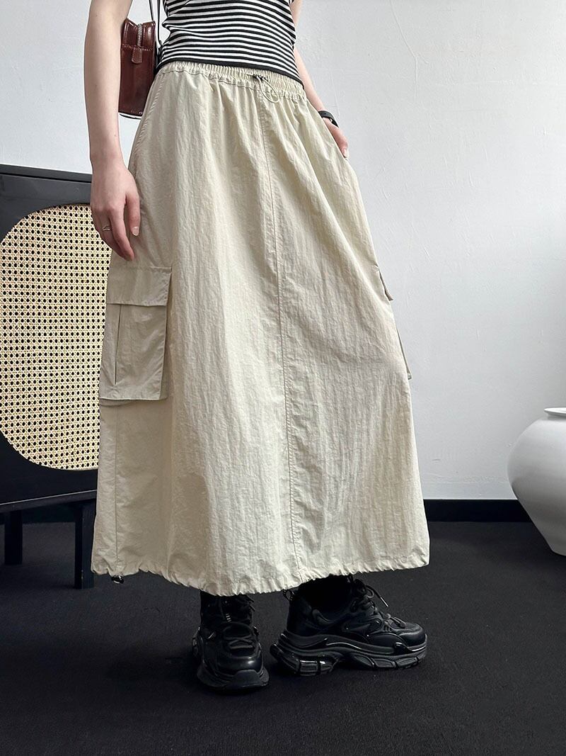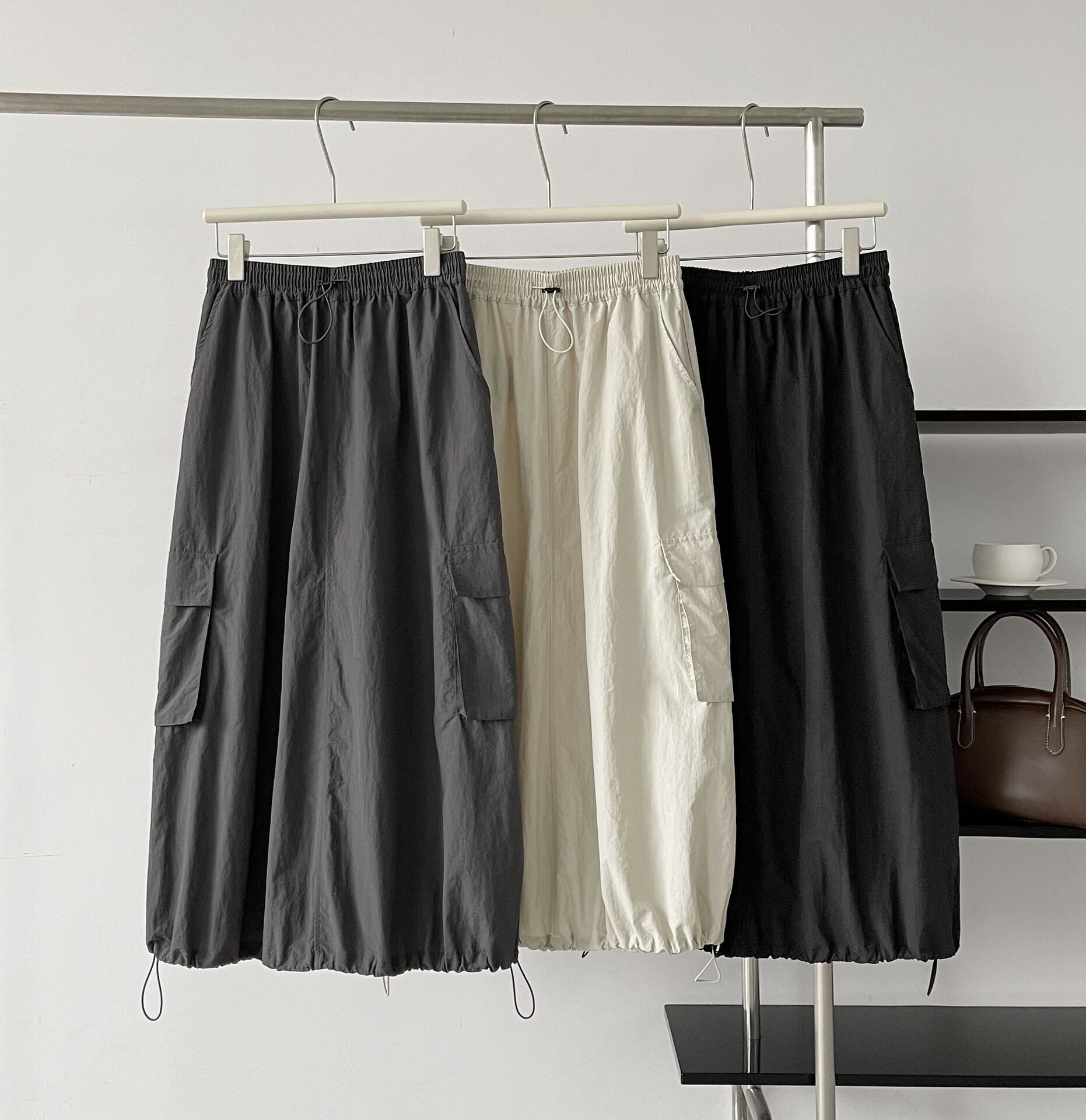 カーゴ フラップポケット レディース スカート ボトムス 膝下 ミモレ ロング バルーン ポケット 2way ドロスト シンプル カジュアル おしゃれ かっこいい こなれ感 スポーティー クール モード系 無地 春 夏 秋 冬 オールシーズン ママ 学生 学校 通学 お出かけ イベント 旅行 公園 休日 ショッピング ライブ お花見 コンパ カフェ フェス 普段使い 着回し S M 黒 ブラック グレー ベージュ モノトーン ベーシックカラー 大人カラー | SPARKJOY レディースファッション
