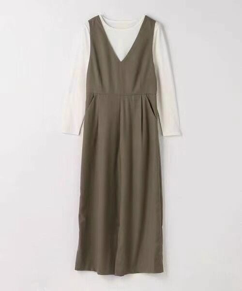 深めVネックとワイドシルエットが魅力の大人カジュアルなオールインワン。柔らかな落ち感のある素材で、すっきりとした縦ラインを演出しつつ、リラックス感もキープします。インナーを変えるだけで季節を問わず着回しが効く万能アイテムです。