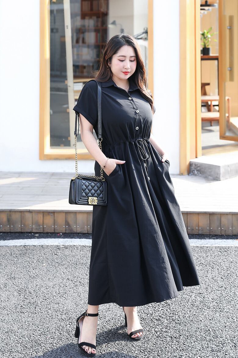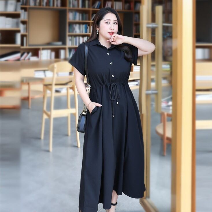 プラスサイズ ワンピース ぽっちゃり レディース 前開き 半袖 フレア フェミニン ポケット ボタン かわいい 大人可愛い きれいめ シンプル カジュアル 上品 おしゃれ かっこいい こなれ感 ラフ ルーズ 個性的 クール 抜け感 キュート 無地 夏 ママ デート お出かけ 旅行 女子会 休日 ホテル ショッピング ライブ コンパ カフェ モノトーン 韓国 オルチャン コーデ 楽ちん 体型カバー 脚長 普段使い 着回し モテ 清楚 トレンド 流行 インスタ映え 定番 4XL 5XL 6XL ブラック | SPARKJOY レディースファッション