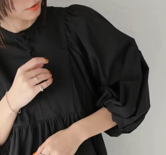 レディース トップス シャツ プルオーバー フレア ミモレ 丈長 長袖 ボリューム袖 ラウンドネック 襟なし ノーカラー 切り替え フェミニン ふわふわ 異国風 ボタン ヴィンテージ 薄手 綿 コットン きれいめ シンプル 上品 おしゃれ 都会的 ラグジュアリー クラシカル ナチュラル 無地 春 秋 ロングシーズン ママ マタニティ オフィス 通勤 通学 お出かけ リゾート 旅行 女子会 休日 ショッピング カフェ モノトーン 体型カバー 流行 ゆったり ゆる フリーサイズ 黒 ブラック | SPARKJOY レディースファッション