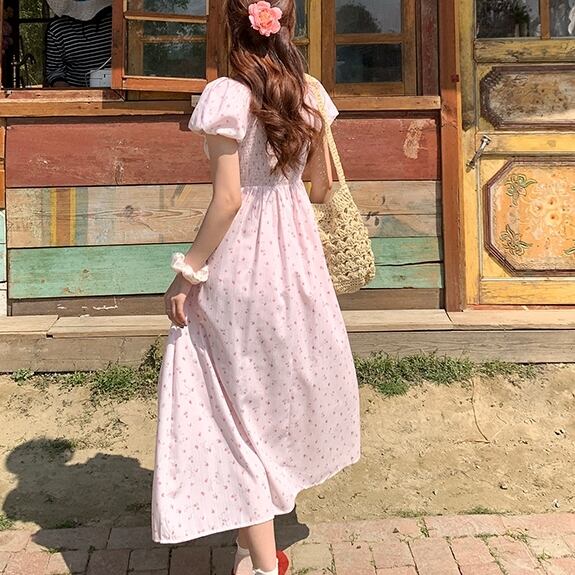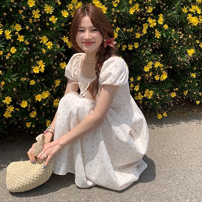 ワンピース ロングワンピース 半袖 パフスリーブ ウエストマーク ロング丈 かわいい 可愛い 大人可愛い きれいめ シンプル 上品 おしゃれ カジュアル こなれ感 個性的 主役級 存在感 抜け感 春 夏 ベーシック ナチュラル フェミニン ガーリー 清楚 小花柄 女性用 レディース ママ マタニティ OL 通勤 オフィス 学生 通学 デート お出かけ お泊まり 女子会 旅行 休日 リゾート カフェ ショッピング コンパ イベント 普段使い デイリー 着回し 重ね着 ワンサイズ トレンド モテ ゆったり | SPARKJOY レディースファッション