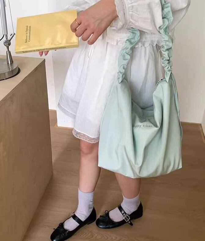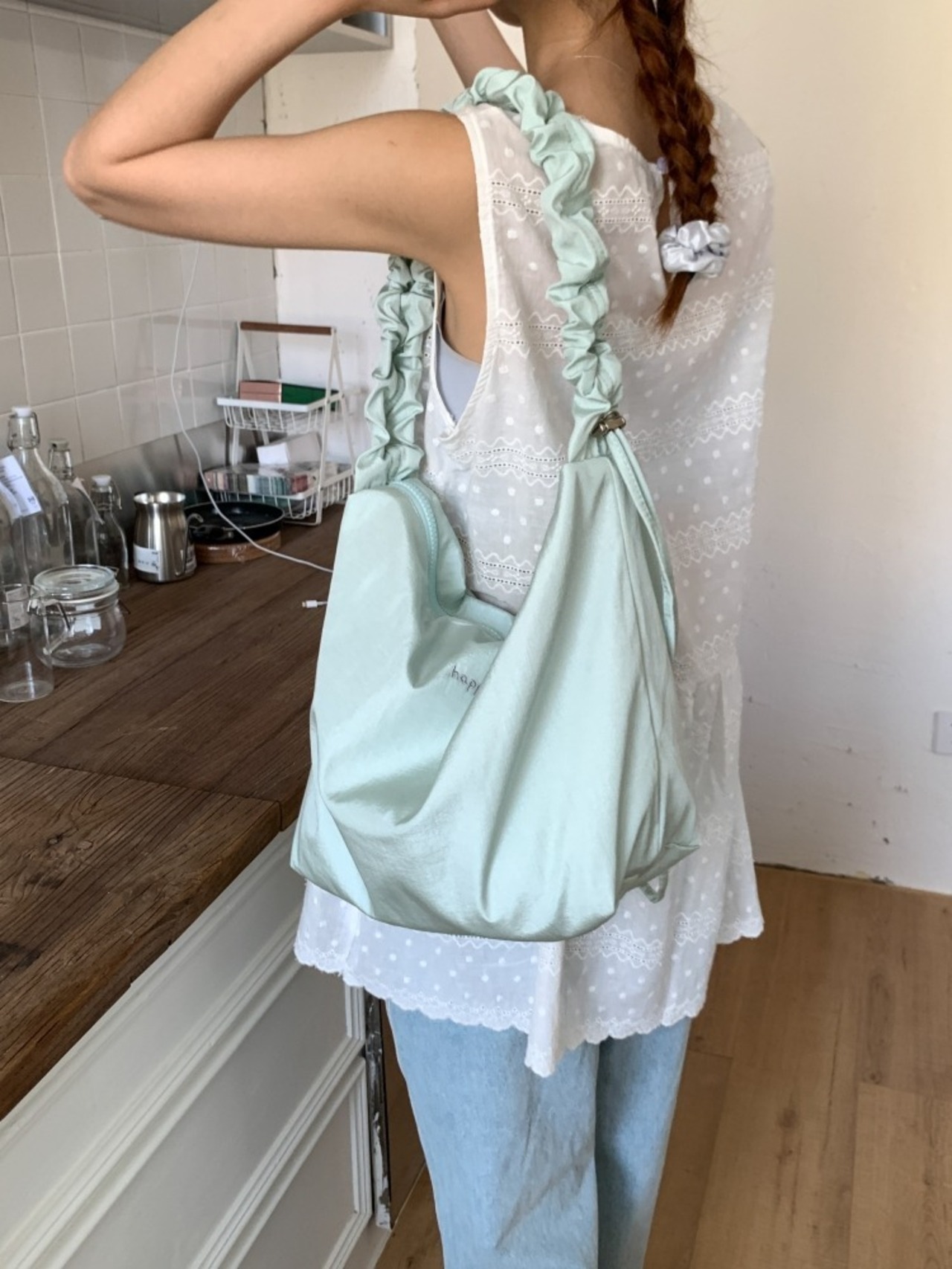 くしゅっとしたギャザーストラップが目を引く、軽やかな2wayショルダーバッグ。
