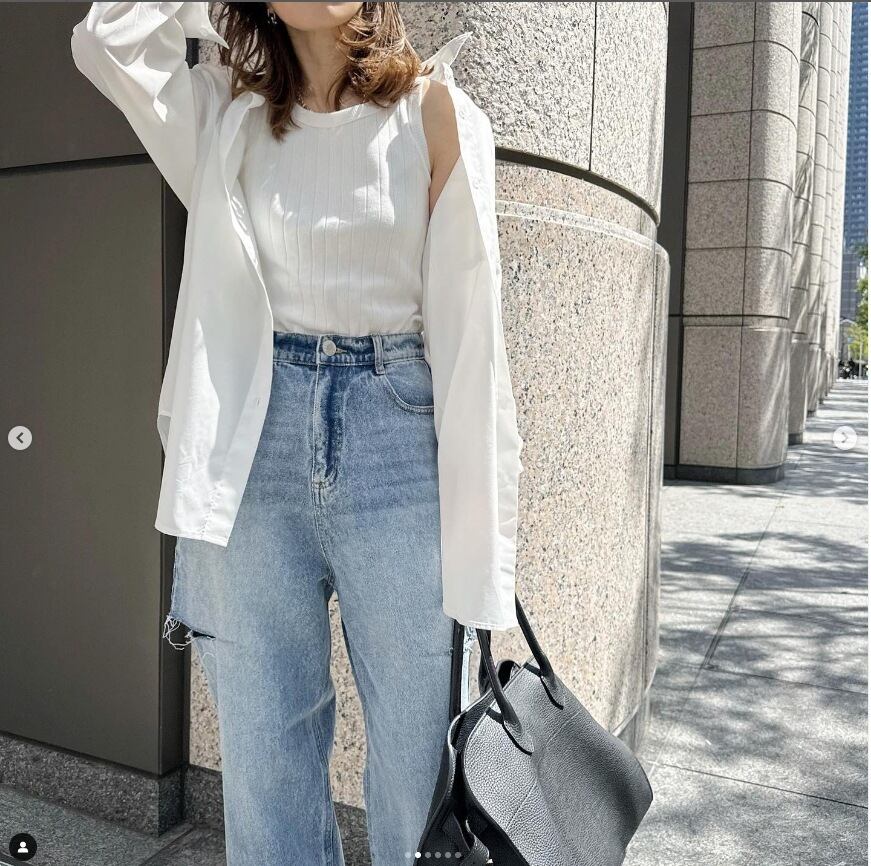 おしゃれなハイウエストデニムパンツ