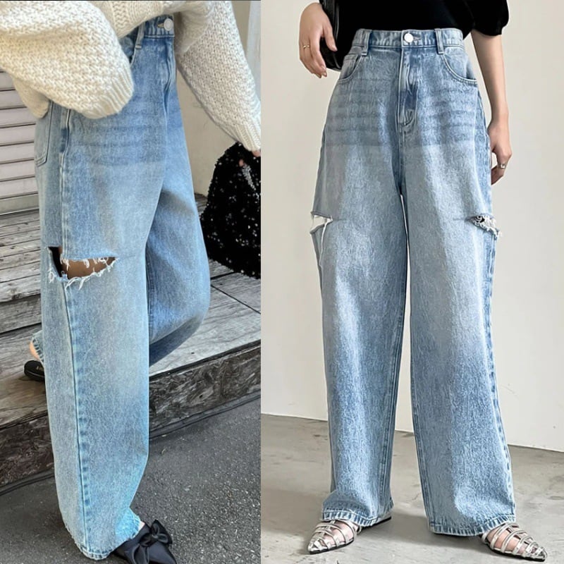 ボトムス ズボン パンツ ロングパンツ ワイドパンツ デニムパンツ ハイウエスト ダメージ加工 ポケット 可愛い かわいい 大人可愛い きれいめ シンプル 上品 おしゃれ カジュアル レトロ こなれ感 ラフ ルーズ 個性的 主役級 存在感 抜け感 オールシーズン ベーシック ナチュラル クール メンズライク 無地 女性用 レディース ママ OL 通勤 学生 通学 デート お出かけ お泊まり 女子会 旅行 休日 カフェ ショッピング コンパ イベント 普段使い 脚長 S M L XL トレンド モテ | SPARKJOY レディースファッション