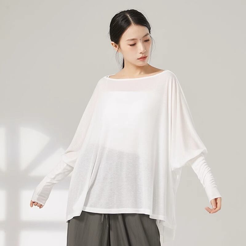 レディース トップス ロンT ブラウス 長袖 ラウンドネック 襟なし ワイド 裾ワイド ストリート 透け感 シースルー 薄手 シアー 大人可愛い シンプル カジュアル おしゃれ かっこいい アジアン エスニック こなれ感 ラフ スポーティー ガーリー ルーズ 個性的 クール 主役級 とろみ感 抜け感 ベーシック アクティブ ナチュラル 無地 春 夏 秋 ロングシーズン 部活 イベント ジム 公園 休日 フェス アースカラー モノトーン 重ね着 お揃い 楽ちん 体型カバー 普段使い 着回し レイヤード 定番 | SPARKJOY レディースファッション