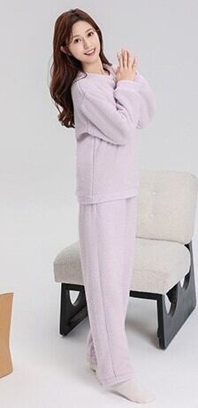 2点セット 上下セット レディース トップス パンツ ボトムス ルームウェア パジャマ プルオーバー 部屋着 セットアップ アンサンブル 寝巻き 長袖 ドロップショルダー クルーネック 襟なし ノーカラー ウエストゴム きれいめ シンプル カジュアル 上品 おしゃれ こなれ感 無地 秋 冬 ママ お泊まり 旅行 休日 ホテル コーデ 普段使い 定番 M L XL ゆったり 紫 オフホワイト ピンク パステル パープル | SPARKJOY レディースファッション
