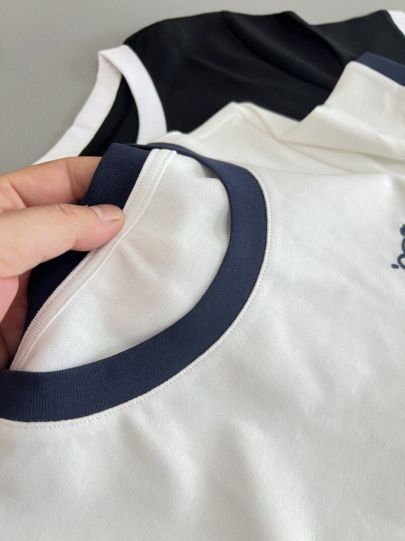 ネックと袖口の配色リブがアクセントになった、シンプルながらこなれ感のあるTシャツです。