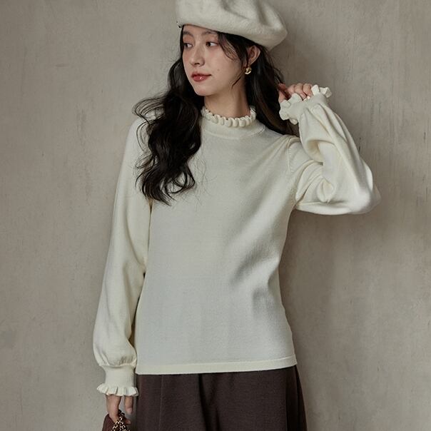 トップス カットソー 長袖 ハイネック プルオーバー ミディアム丈 フリル 可愛い かわいい 大人可愛い きれいめ シンプル 上品 レトロ おしゃれ かっこいい カジュアル こなれ感 個性的 主役級 存在感 抜け感 ベーシック ナチュラル エレガント フェミニン ガーリー 清楚 無地 女性用 レディース ママ OL 通勤 オフィス 学生 通学 デート お出かけ お泊まり 女子会 旅行 リゾート 休日 カフェ ショッピング コンパ イベント 普段使い デイリー 着回し 重ね着 S M L トレンド モテ | SPARKJOY レディースファッション