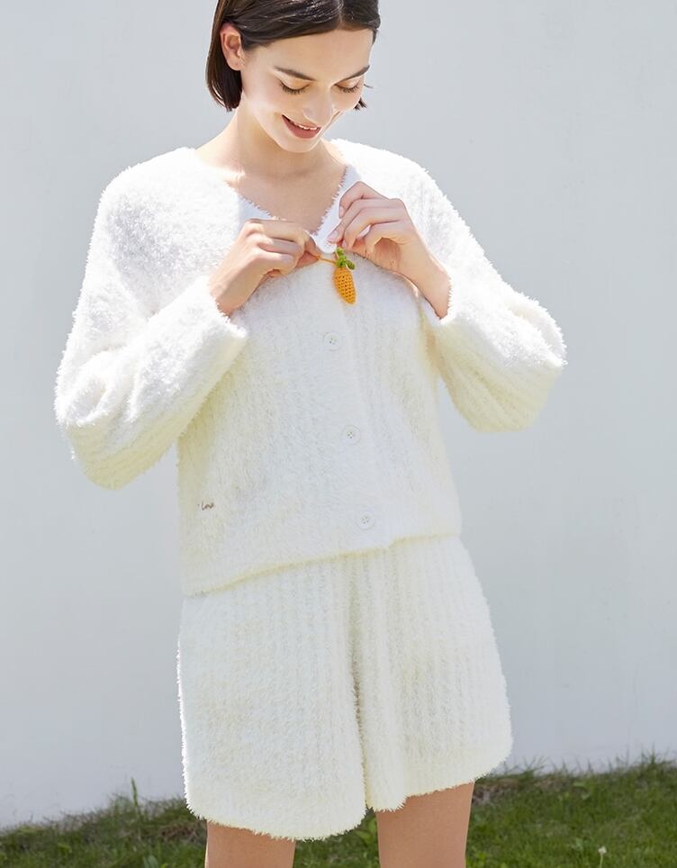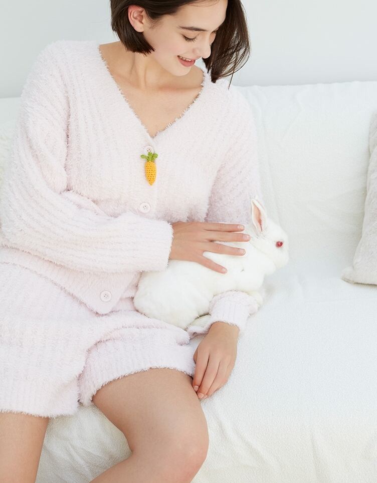 パジャマ ナイトウエア 上下セット パジャマ 長袖 Vネック 前開き ボタン ミディアム丈 ハーフパンツ ウエストゴム レッグウォーマー もこもこ 可愛い かわいい 大人可愛い きれいめ シンプル 上品 おしゃれ かっこいい レトロ ルーズ こなれ感 個性的 主役級 存在感 抜け感 秋 冬 ナチュラル ベーシック キュート ガーリー 無地 レディース 女性用 ママ デート お出かけ お泊まり イベント 女子会 休日 ホテル お泊まりデート 旅行 普段使い 着回し M L XL 2XL トレンド モテ | SPARKJOY レディースファッション