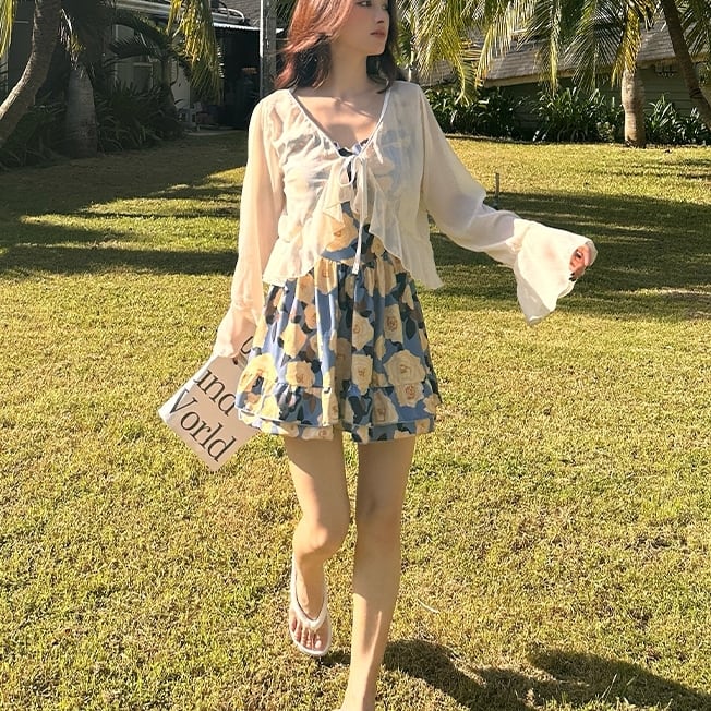 スイムウエア 水着 ワンピース水着 スカート付き パッド付き 胸元 カーディガン 長袖 リボン ショート丈 シースルー 伸縮性 可愛い かわいい 大人可愛い シンプル カジュアル 大人 おしゃれ お洒落 大人女子 こなれ感 個性的 キュート フェミニン ガーリー 清楚 花柄 主役級 存在感 抜け感 夏 10代 20代 女性用 レディース デート お出かけ 女子会 休日 イベント 旅行 リゾート バカンス 海 プール 美脚 脚長 M L XL 2XL 3XL 4XL 5XL 日焼け防止 二の腕カバー | SPARKJOY レディースファッション