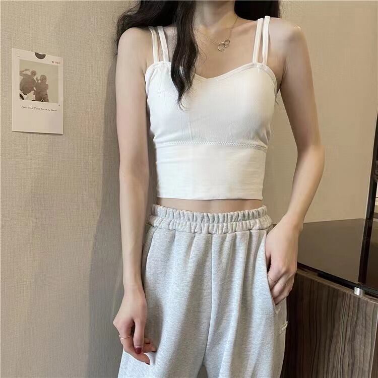 ブラトップ ダブルストラップ レディース トップス キャミソール インナー ショート クロップド丈 袖なし ノースリーブ 襟なし タイト スリム 細身 伸縮性 シンプル カジュアル 上品 おしゃれ こなれ感 ラフ クール ナチュラル 無地 春 夏 秋 冬 オールシーズン ママ 学生 学校 デート お出かけ アウトドア リゾート 旅行 ビーチ 公園 女子会 休日 バカンス ショッピング ライブ お花見 合コン カフェ フェス 普段使い 着回し モテ フリーサイズ 白 ホワイト 黒 ブラック グレー | SPARKJOY レディースファッション
