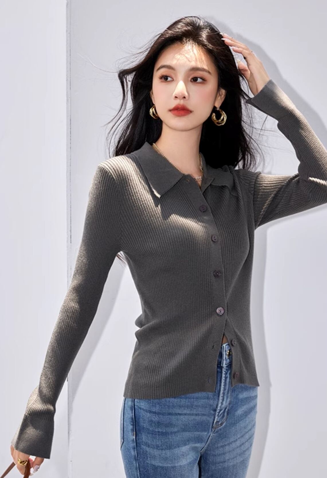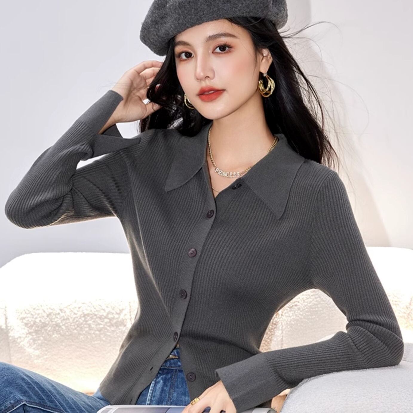 トップス シャツ ニットシャツ 長袖 襟付き前開き ボタン ミディアム丈 ニット 萌え袖 可愛い かわいい 大人可愛い きれいめ シンプル 上品 レトロ おしゃれ かっこいい カジュアル こなれ感 個性的 主役級 存在感 抜け感 ベーシック ナチュラル クール 無地 女性用 レディース ママ OL 通勤 オフィス 学生 通学 デート お出かけ お泊まり 女子会 旅行 リゾート 休日 アウトドア カフェ ショッピング コンパ イベント 普段使い デイリー 着回し 重ね着 S M L トレンド モテ | SPARKJOY レディースファッション