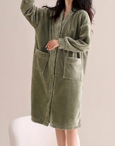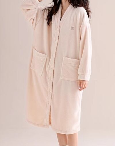 パジャマ ナイトウエア パジャマ ナイトガウン 長袖 Vネック 前開き ボタン 暖かい 厚手 ポケット ミディアム丈 収納 コンパクト 持ち運び 可愛い かわいい 大人可愛い きれいめ シンプル 上品 おしゃれ かっこいい レトロ こなれ感 個性的 主役級 存在感 抜け感 秋 冬 ナチュラル ベーシック クール メンズライク 無地 レディース 女性用 ママ デート お出かけ お泊まり イベント 女子会 休日 ホテル お泊まりデート 旅行 普段使い 着回し M L XL 2XL 3XL 4XL 暖かい | SPARKJOY レディースファッション
