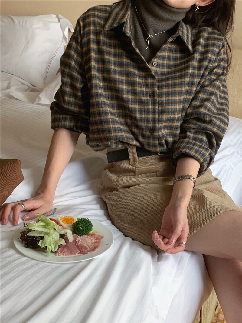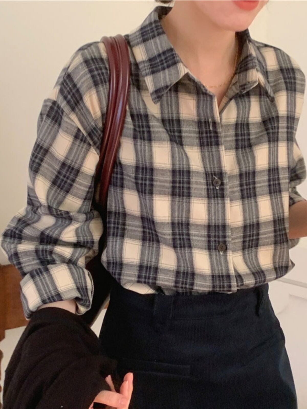 トップス シャツ 長袖 襟付き 前開き ボタン ミディアム丈 可愛い かわいい 大人可愛い きれいめ シンプル 上品 レトロ おしゃれ かっこいい カジュアル こなれ感 個性的 主役級 存在感 抜け感 秋 冬 ベーシック ナチュラル クール メンズライク チェック柄 女性用 レディース ママ OL 通勤 オフィス 学生 通学 デート お出かけ お泊まり 女子会 旅行 リゾート 休日 アウトドア カフェ ショッピング コンパ イベント 普段使い デイリー 着回し 重ね着 M L 定番アイテム モテ | SPARKJOY レディースファッション