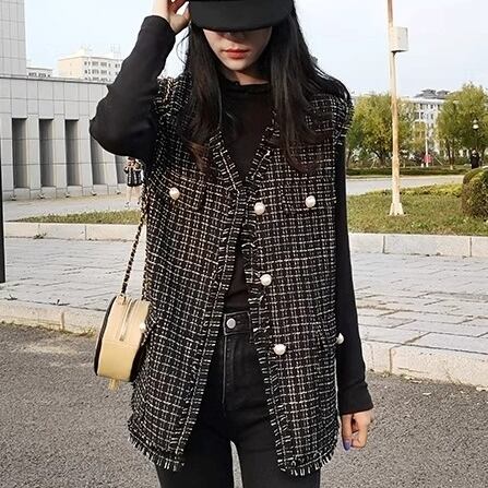 アウター ベスト Vネック 前開き ボタン マルチポケット ミディアム丈 ツイード 可愛い かわいい 大人可愛い きれいめ シンプル 上品 おしゃれ レトロ かっこいい カジュアル こなれ感 個性的 主役級 存在感 抜け感 秋 冬 ベーシック ナチュラル クール エレガント チェック柄 女性用 レディース OL 通勤 学生 通学 デート お出かけ お泊まり 女子会 旅行 休日 アウトドア カフェ ショッピング コンパ 普段使い イベント 着回し デイリー S M L XL 2XL トレンド モテ | SPARKJOY レディースファッション