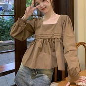 トップス ブラウス 長袖 スクエアネック プルオーバー ショート丈 切り替えデザイン ペプラム 可愛い かわいい 大人可愛い きれいめ シンプル 上品 レトロ おしゃれ かっこいい カジュアル こなれ感 個性的 主役級 存在感 抜け感 春 夏 ベーシック ナチュラル フェミニン ガーリー 清楚 無地 女性用 レディース ママ OL 通勤 オフィス 学生 通学 デート お出かけ お泊まり 女子会 旅行 リゾート 休日 カフェ ショッピング コンパ イベント 普段使い デイリー 着回し 重ね着 ワンサイズ | SPARKJOY レディースファッション
