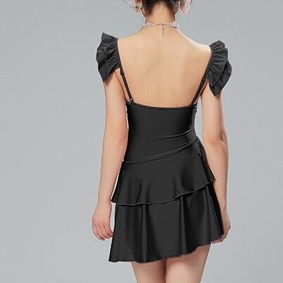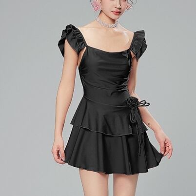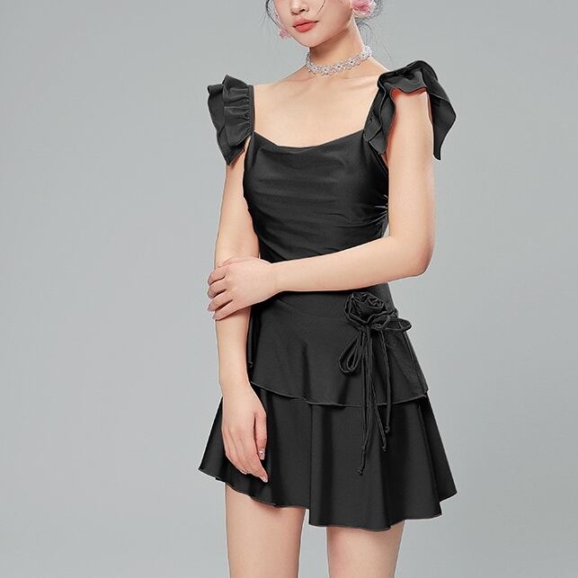 スイムウエア 水着 ワンピース水着 スカート付き パッド付き 袖フリル スクエアネック サイドリボン アシンメトリー 洋服みたい 伸縮性 可愛い かわいい 大人可愛い シンプル カジュアル 大人 おしゃれ お洒落 大人女子 こなれ感 個性的 キュート フェミニン ガーリー 清楚 無地 主役級 存在感 抜け感 夏 10代 20代 女性用 レディース デート お出かけ 女子会 休日 イベント 旅行 リゾート バカンス 海 プール 美脚 脚長 M L XL 2XL トレンド スレンダー スタイルアップ モテ | SPARKJOY レディースファッション