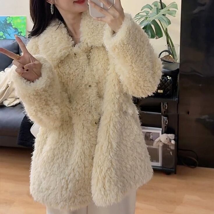 アウター コート フェイクファーコート 長袖 襟付き 前開き ボタン ポケット もこもこ ミディアム丈 大人可愛い 可愛い きれいめ シンプル 上品 おしゃれ レトロ かっこいい カジュアル こなれ感 個性的 主役級 存在感 抜け感 冬 ベーシック ナチュラル フェミニン ガーリー 清楚 無地 女性用 レディース ママ OL 通勤 学生 通学 デート お出かけ お泊まり 女子会 休日 旅行 カフェ アウトドア 公園 普段使い デイリー イベント 着回し 重ね着 S M L トレンド モテ 暖かい | SPARKJOY レディースファッション
