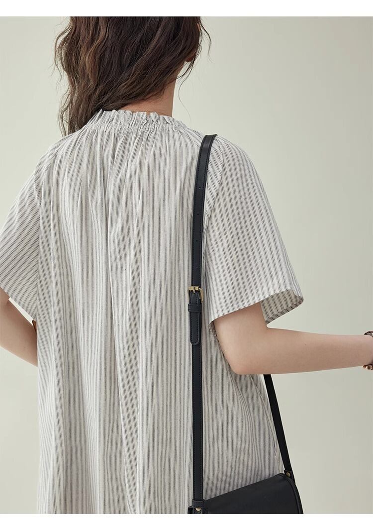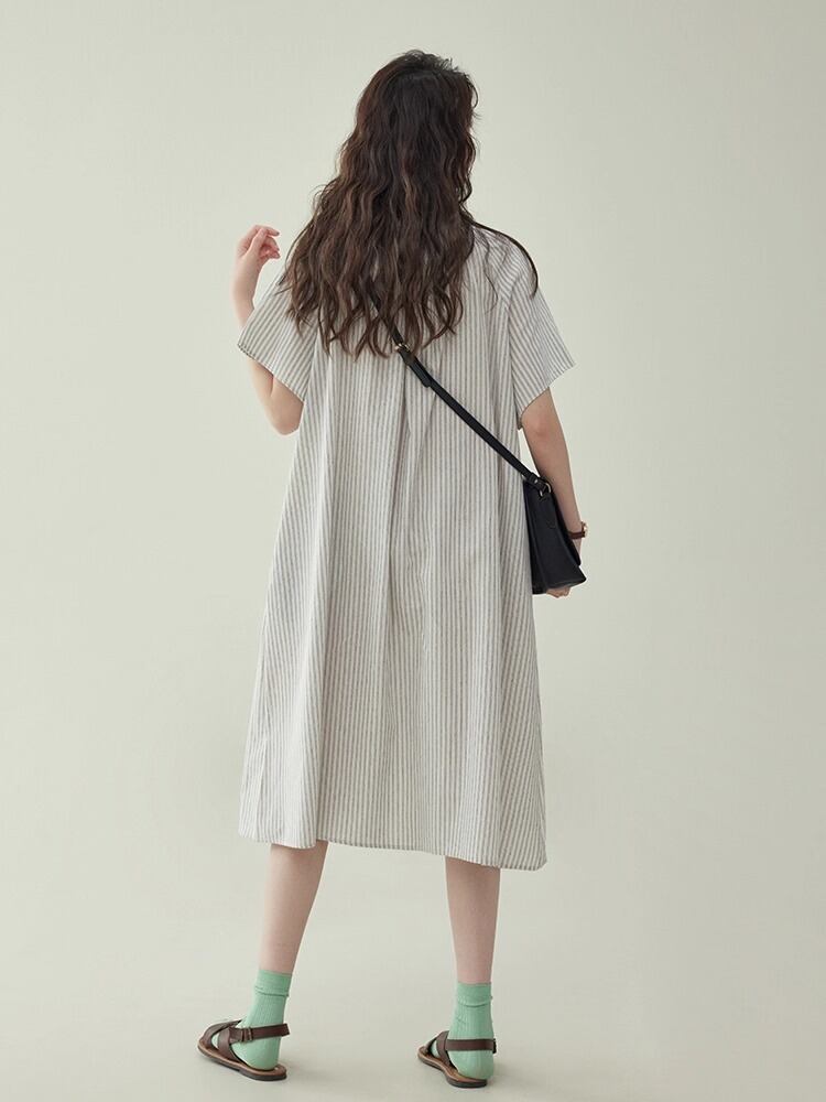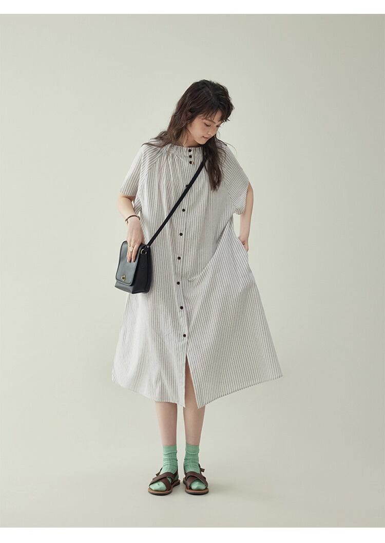 レディース ワンピース シャツ シャツワンピ 羽織 前開き 膝丈 ミモレ 半袖 5分袖 Uネック ラウンドネック 襟なし ストレート Iライン 前開き 2way ボタン 薄手 コットン かわいい 大人可愛い シンプル カジュアル おしゃれ レトロ こなれ感 ラフ ガーリー ルーズ モード系 主役級 存在感 抜け感 キュート ゴシック 都会的 カレッジ風 ベーシック ナチュラル ストライプ 春 夏 ママ マタニティ デート お出かけ リゾート 旅行 海 プール ビーチ 公園 女子会 休日 バカンス ガーデン | SPARKJOY レディースファッション