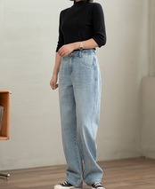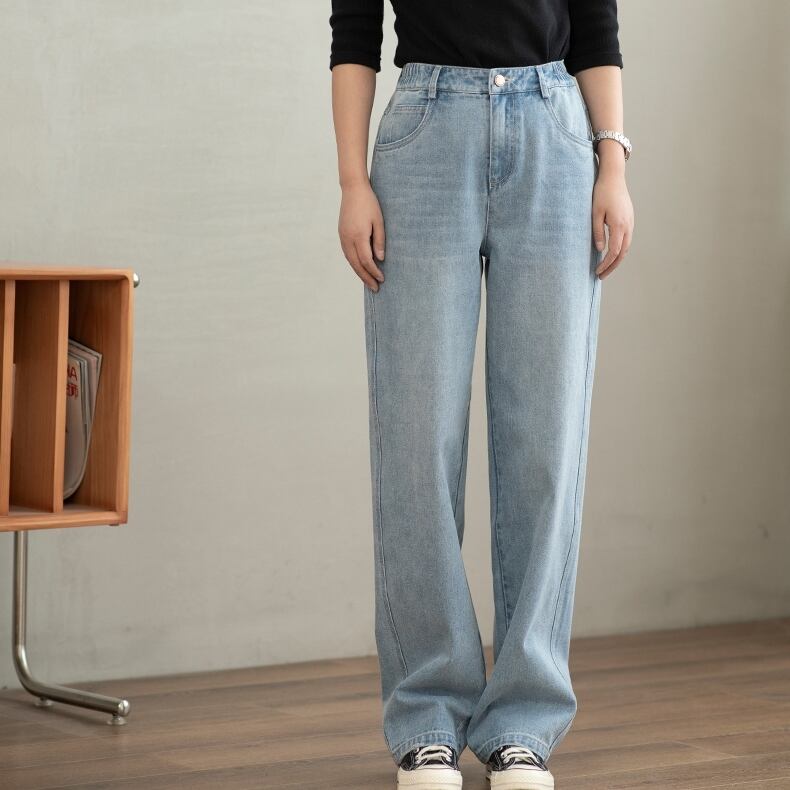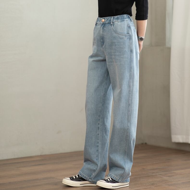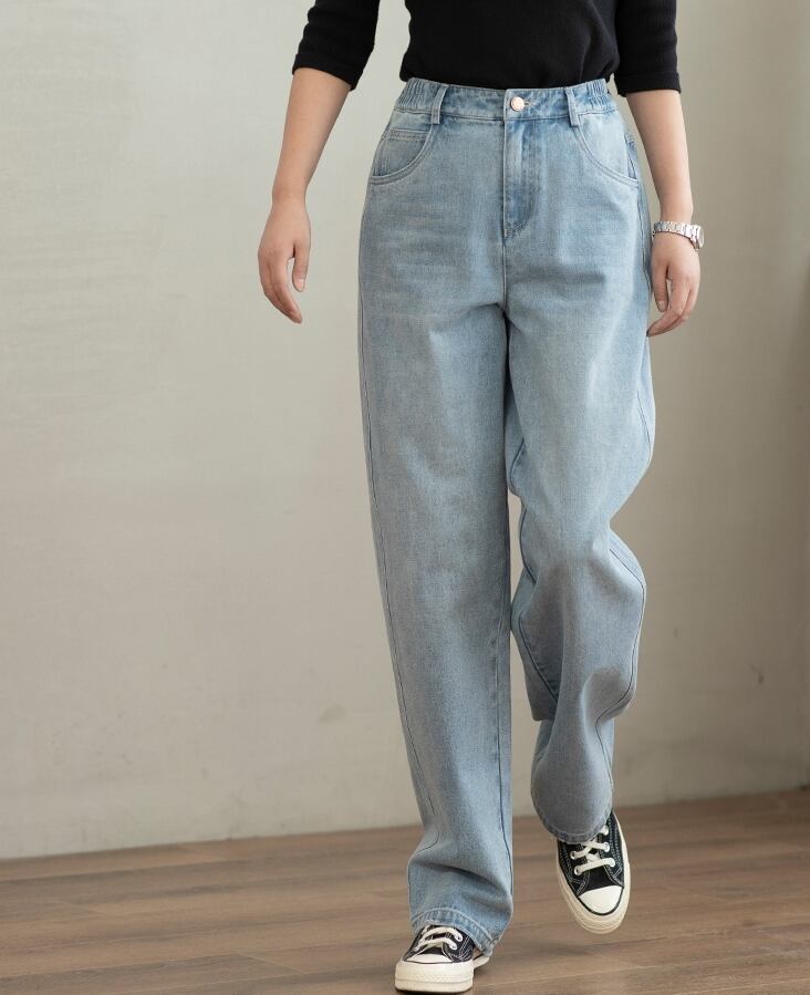 大人可愛い印象を与える「デニムパンツ」は、シンプルで上品なデザインが魅力のロングパンツです。