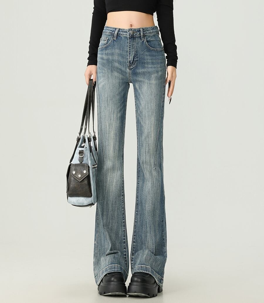 大人可愛いベルボトムデニムパンツ