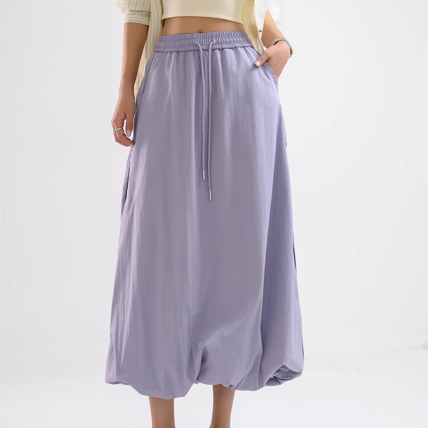 ボトムス スカート ロングスカート バルーンスカート ウエストゴム ポケット ロング丈 可愛い かわいい 大人可愛い きれいめ シンプル 上品 おしゃれ カジュアル レトロ こなれ感 個性的 主役級 存在感 抜け感 オールシーズン ロングシーズン ベーシック ナチュラル メンズライク スポーティー 無地 女性用 レディース ママ OL 通勤 オフィス 学生 通学 デート お出かけ お泊まり 女子会 旅行 休日 カフェ ショッピング コンパ イベント 普段使い デイリー M XL トレンド モテ | SPARKJOY レディースファッション